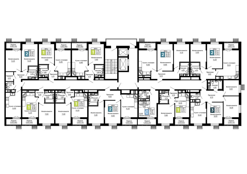 | 2-комн. | 57 - 64 м² | цена по телефону |