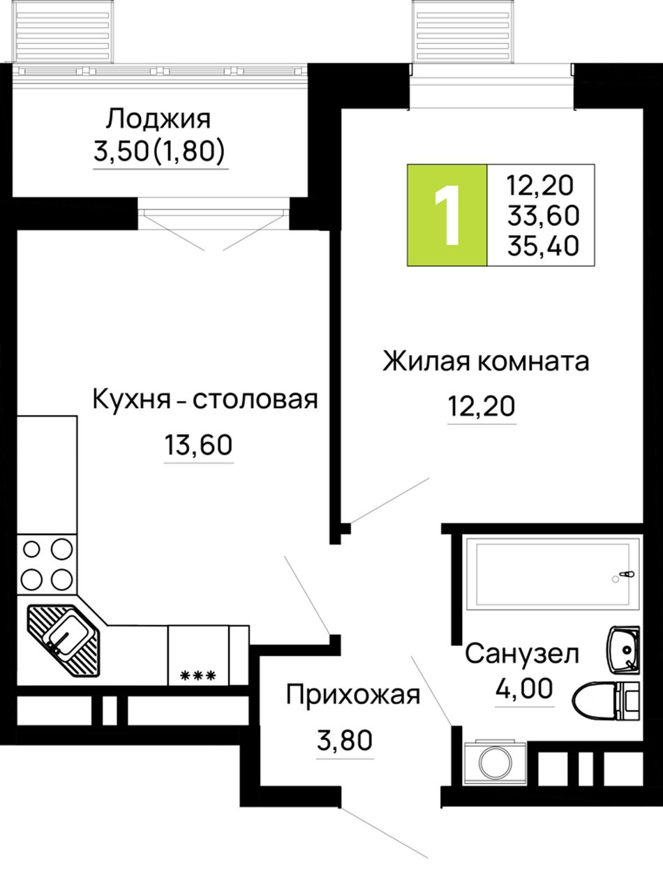 1-комнатная — 35,4 м² 5/16 эт. в Традиции