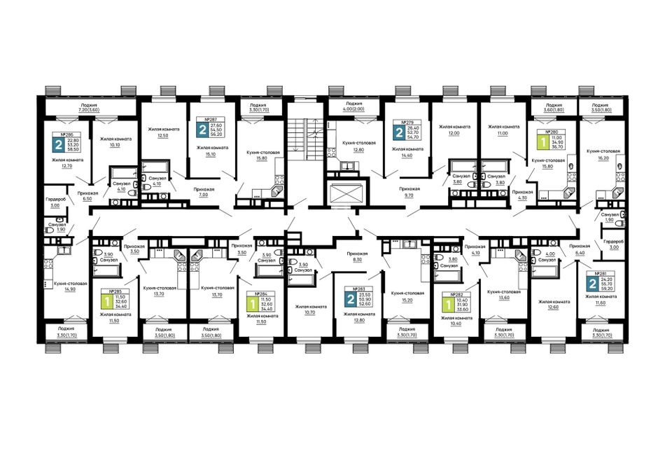 | 2-комн. | 51 - 60 м² | 9 - 10,6 млн ₽ |