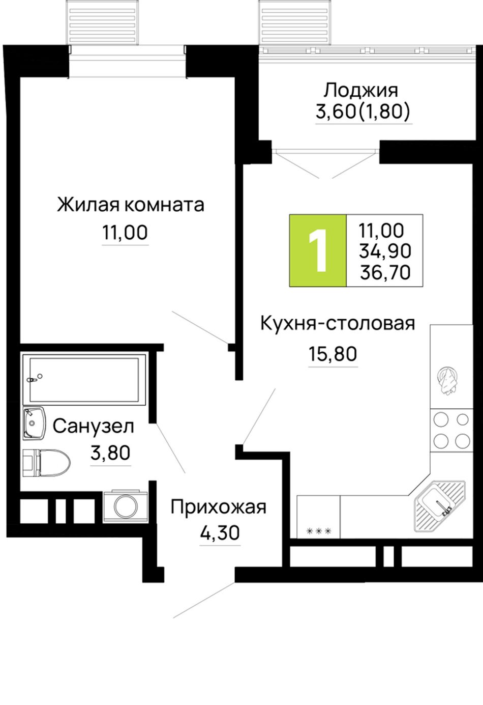 1-комнатная — 36,7 м² 1/16 эт. в Традиции