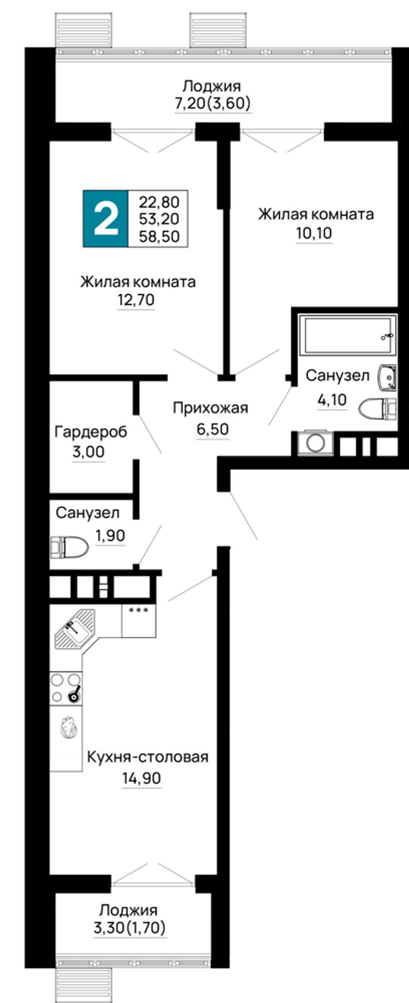 Общая площадь58,5 м²