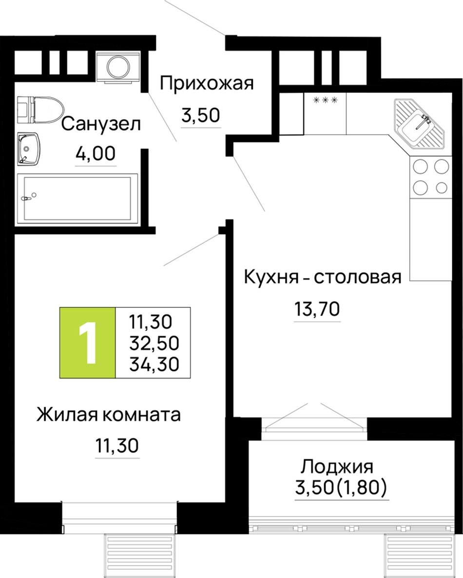 Общая площадь34,3 м²