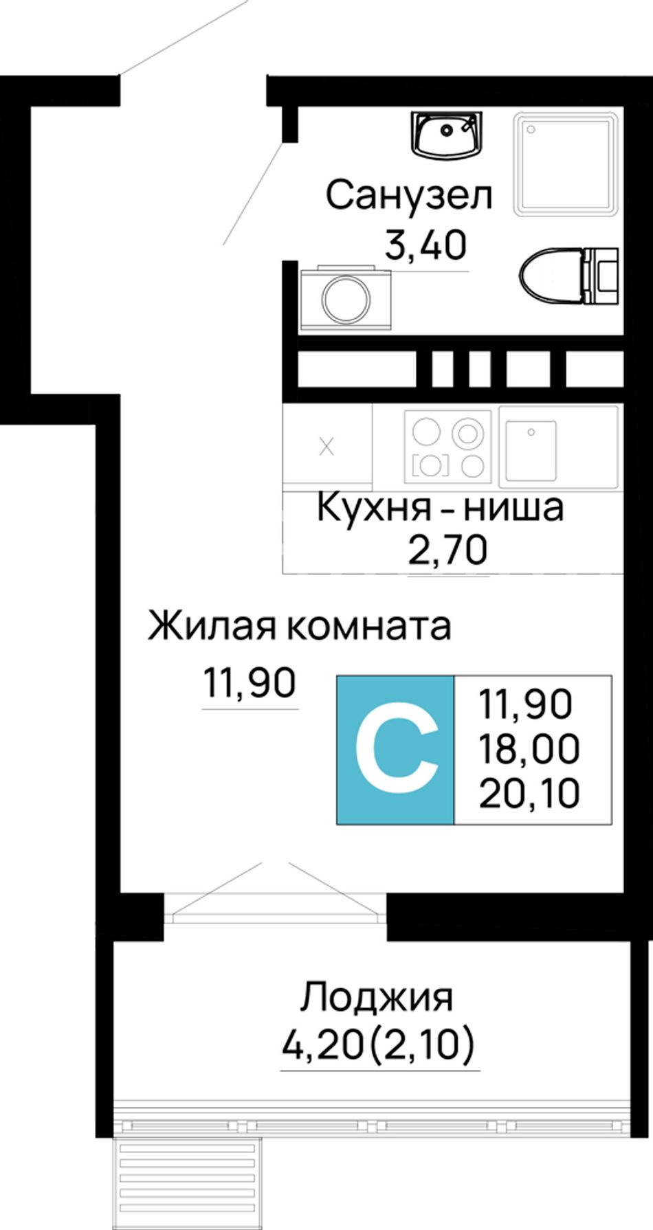 Студия — 20,1 м² 3/16 эт. в Традиции