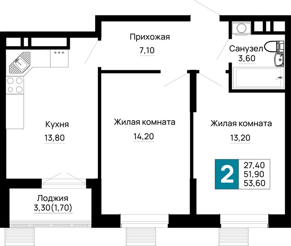 Общая площадь53,6 м²