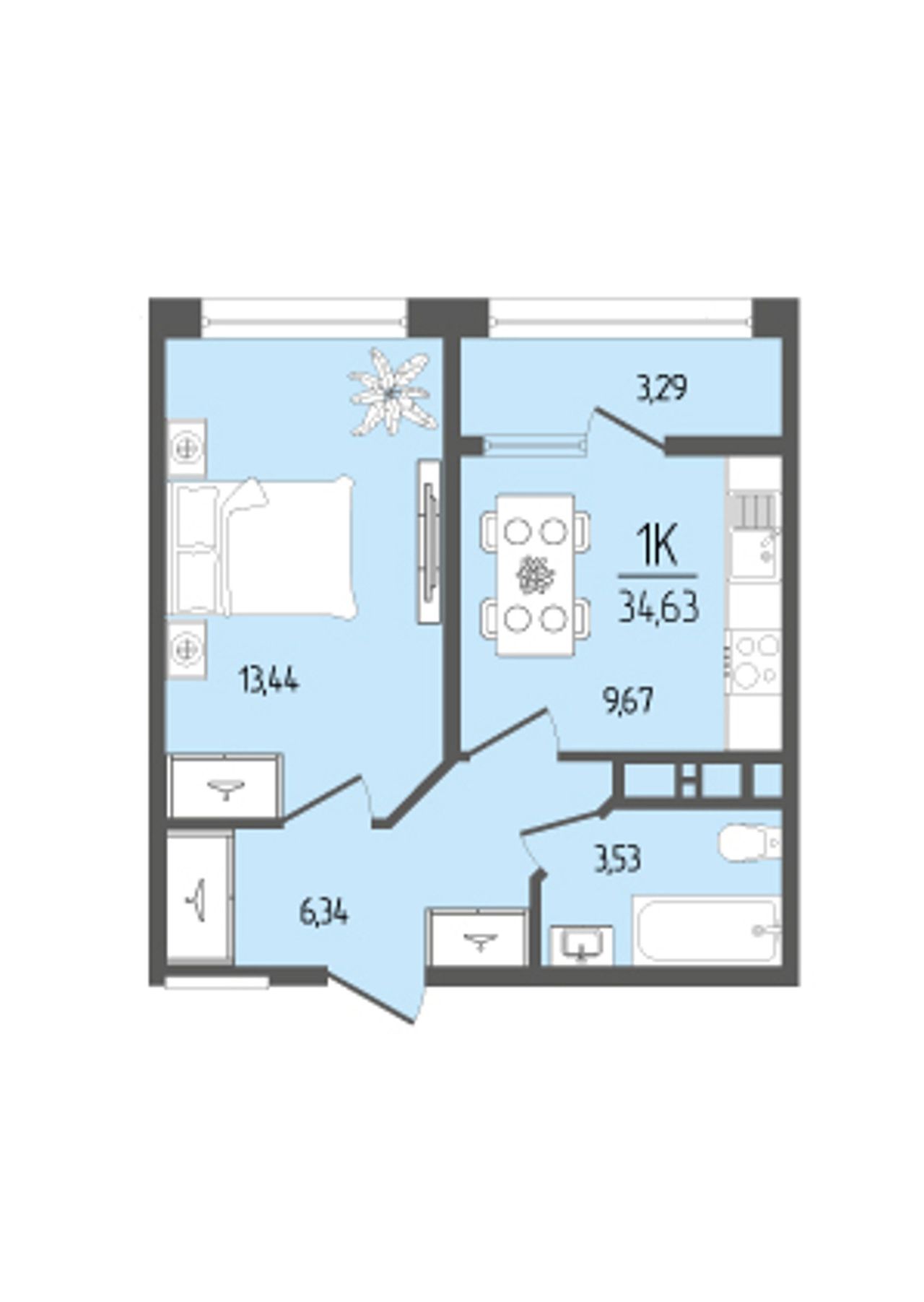 1-комнатная — 34,63 м² 14/16 эт. в Прима