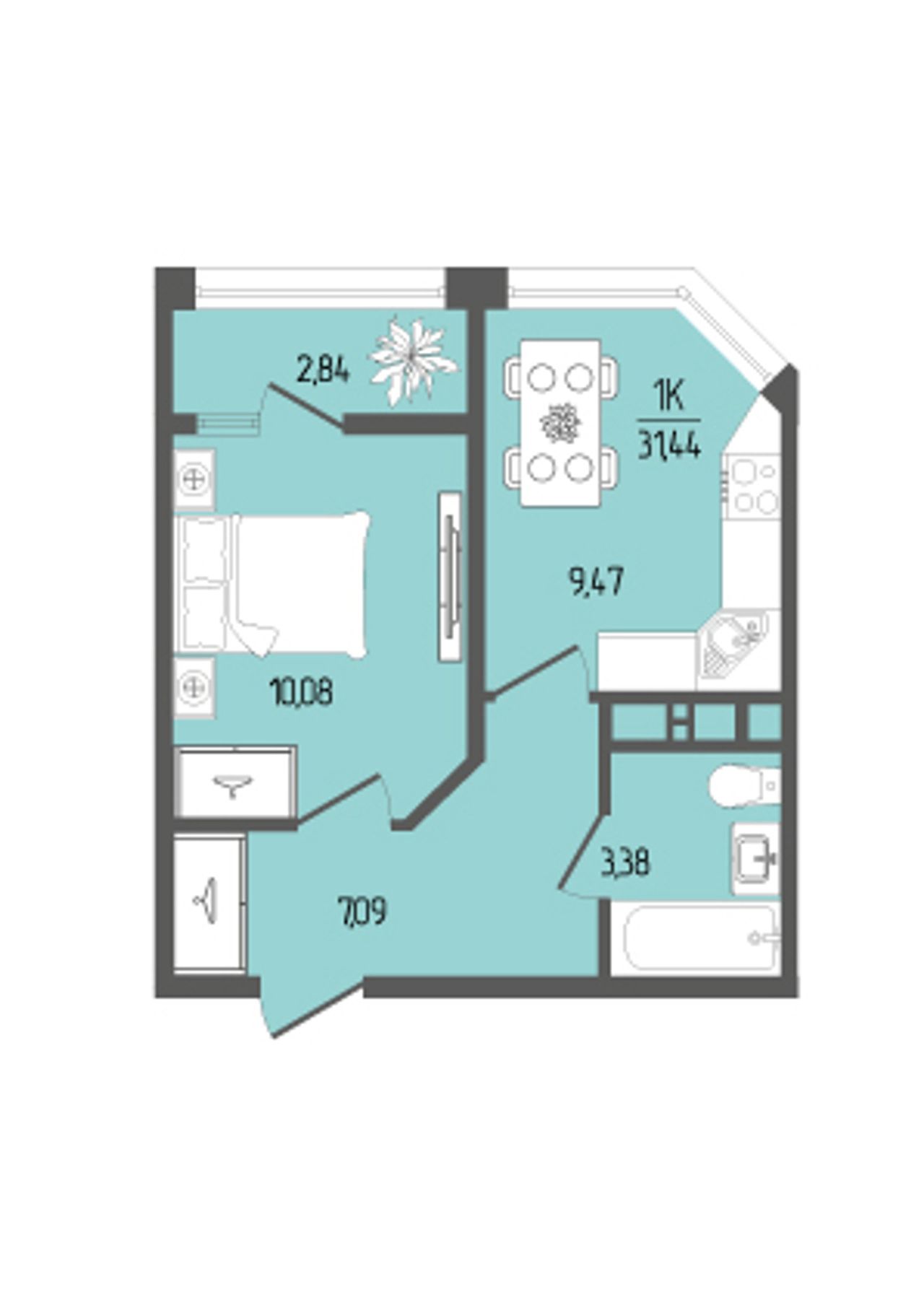 Общая площадь31,44 м²