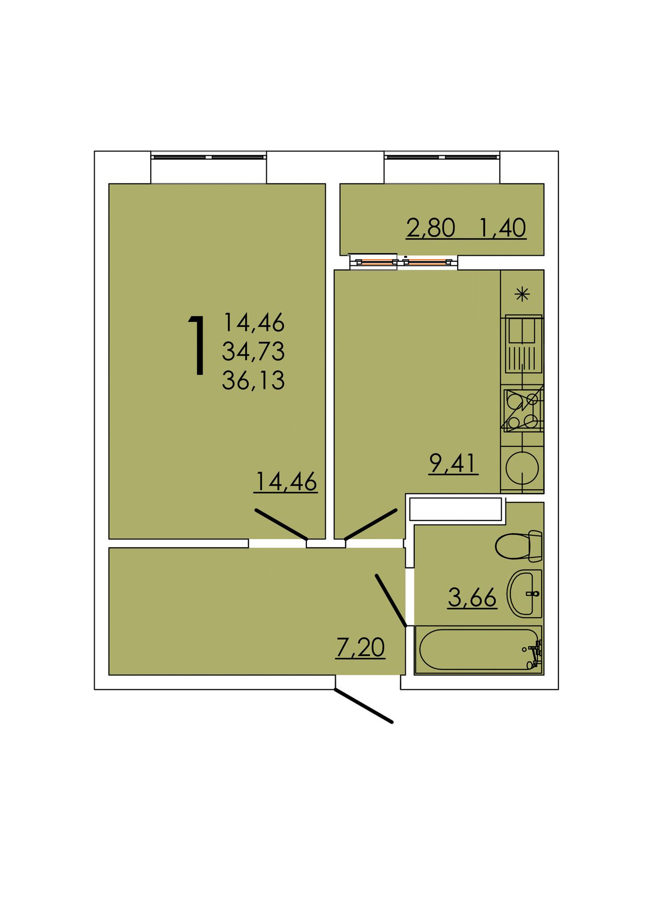 Общая площадь36,13 м²