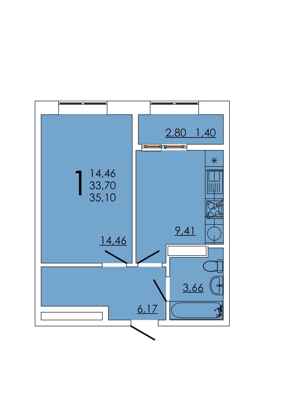1-комнатная — 35,1 м² 21/24 эт. в Фрейм