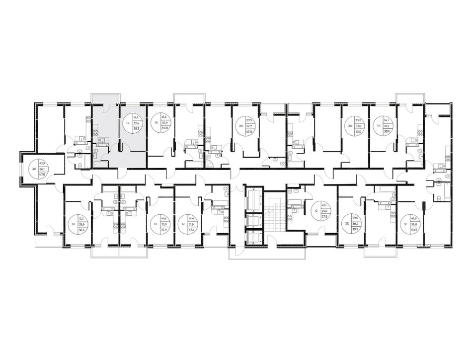 | Студия | 23 - 24 м² | 3,8 - 4,6 млн ₽ |