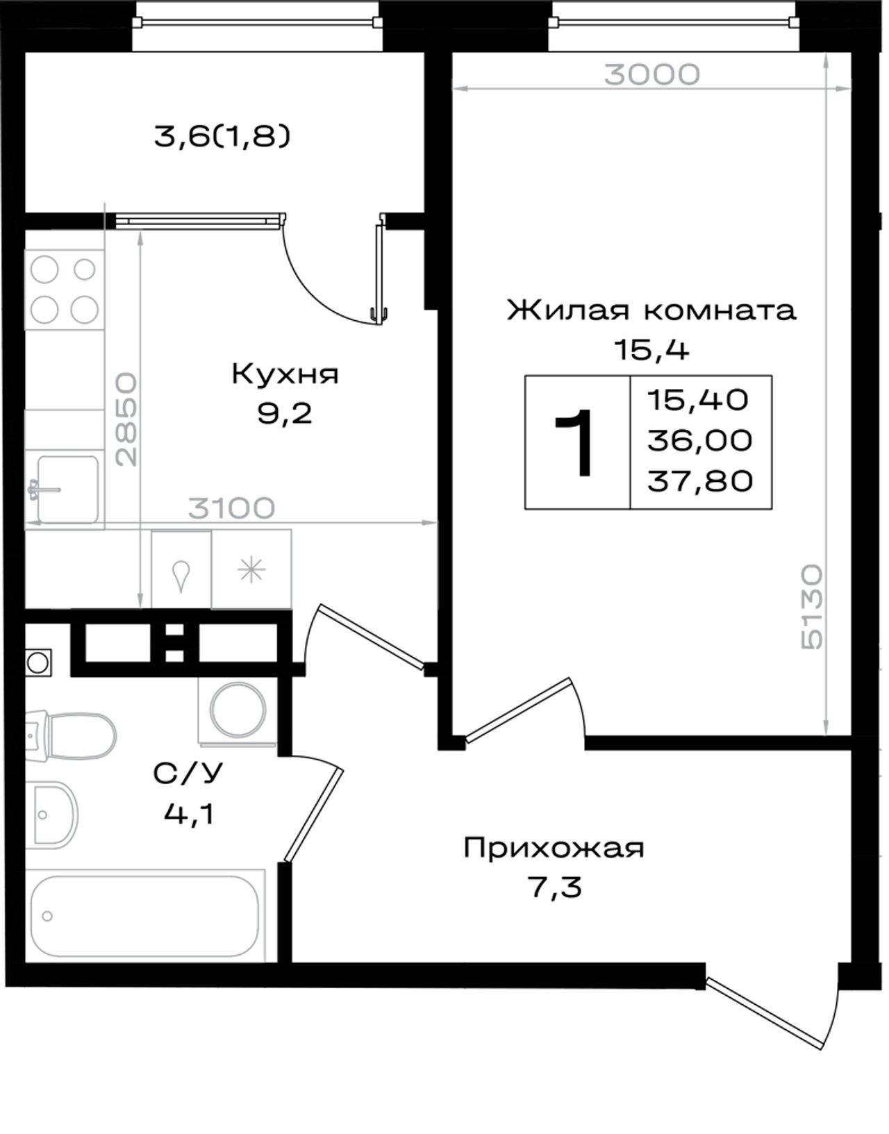 Общая площадь37,8 м²