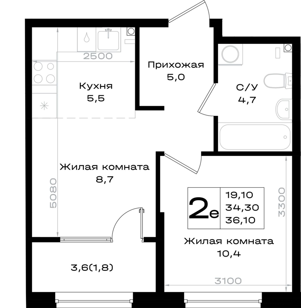 2-комнатная — 36,1 м² 2/18 эт. в Придонье