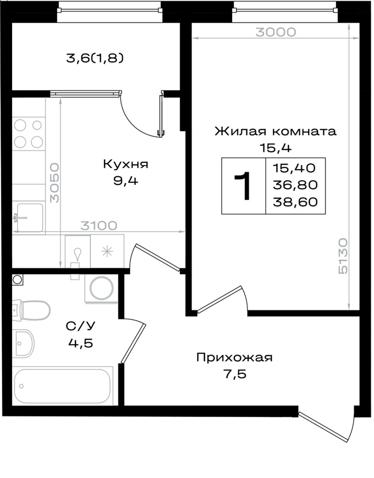 Общая площадь38,6 м²