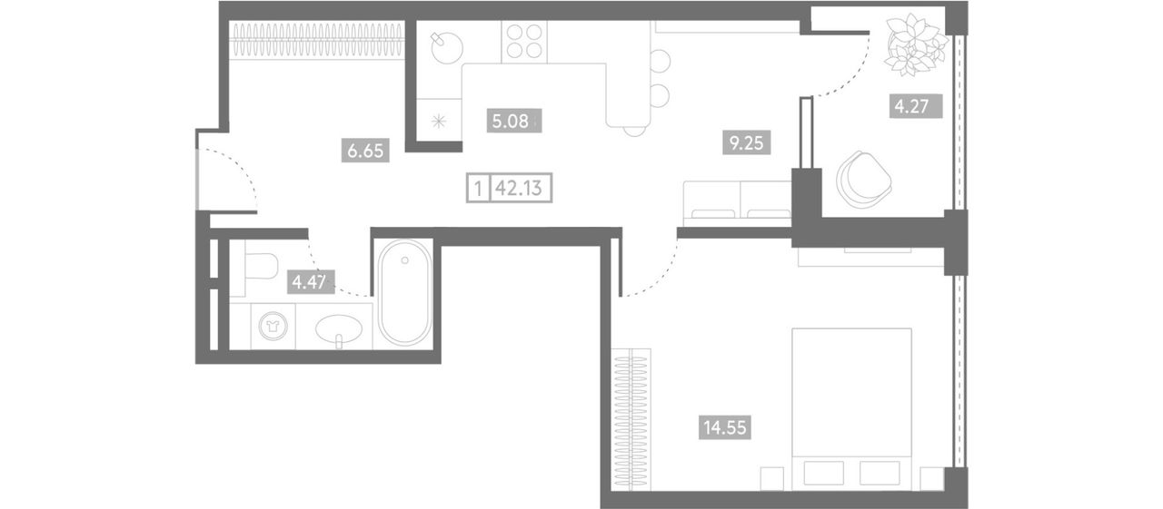 1-комнатная — 42,13 м² 8/24 эт. в Проявление