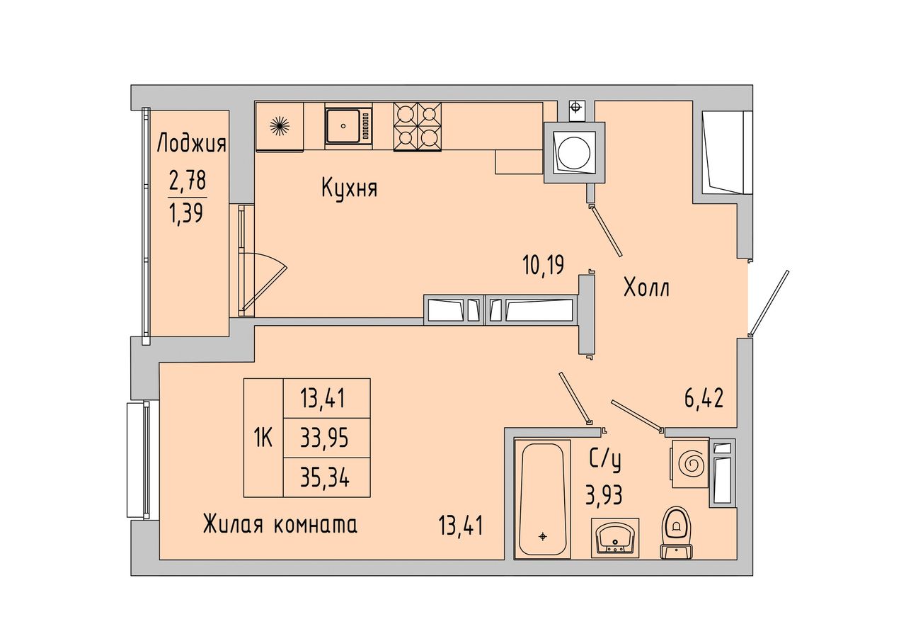 Общая площадь35,34 м²