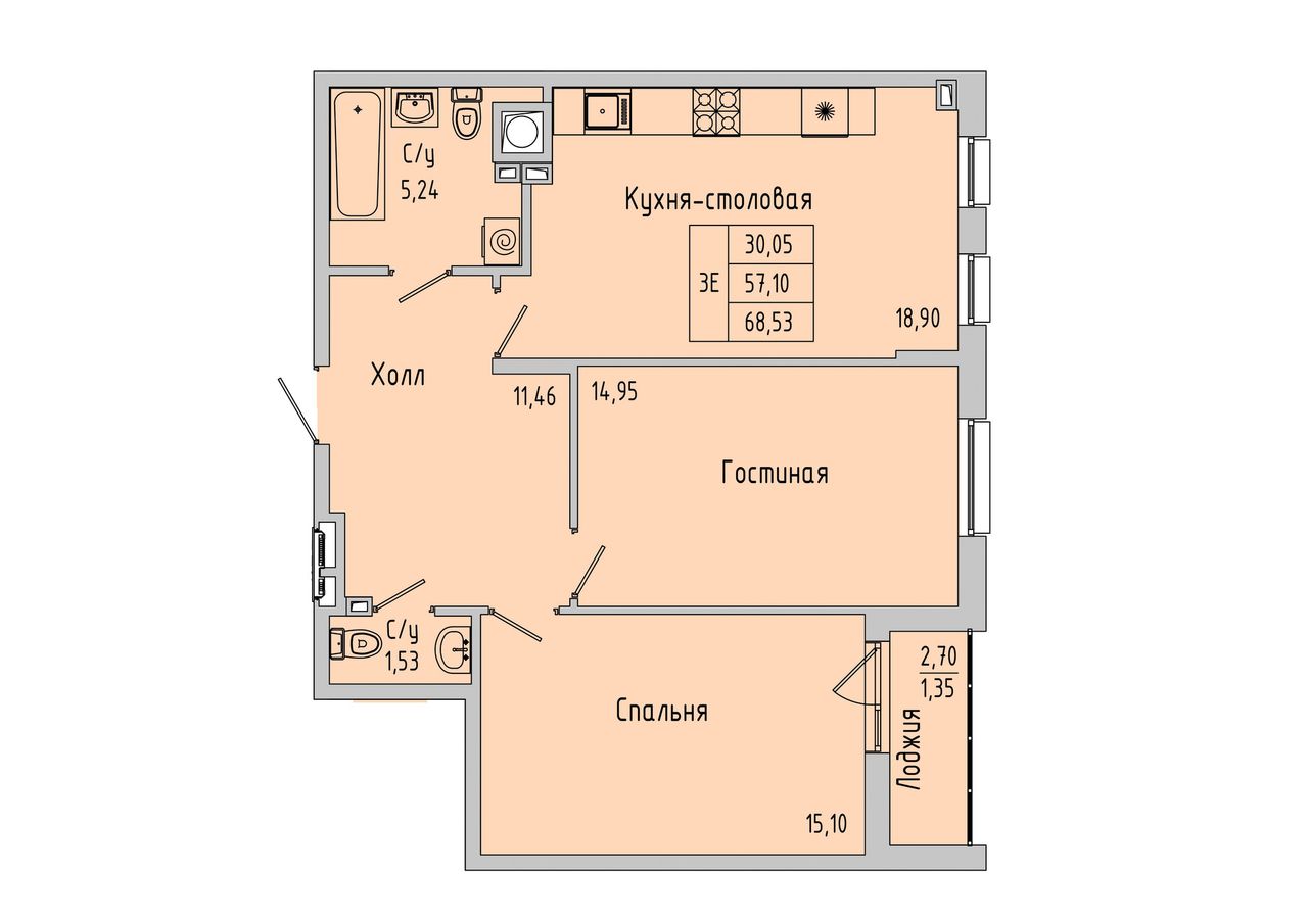 Общая площадь68,53 м²