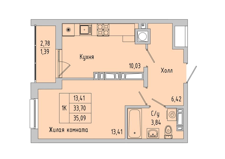 Общая площадь35,09 м²