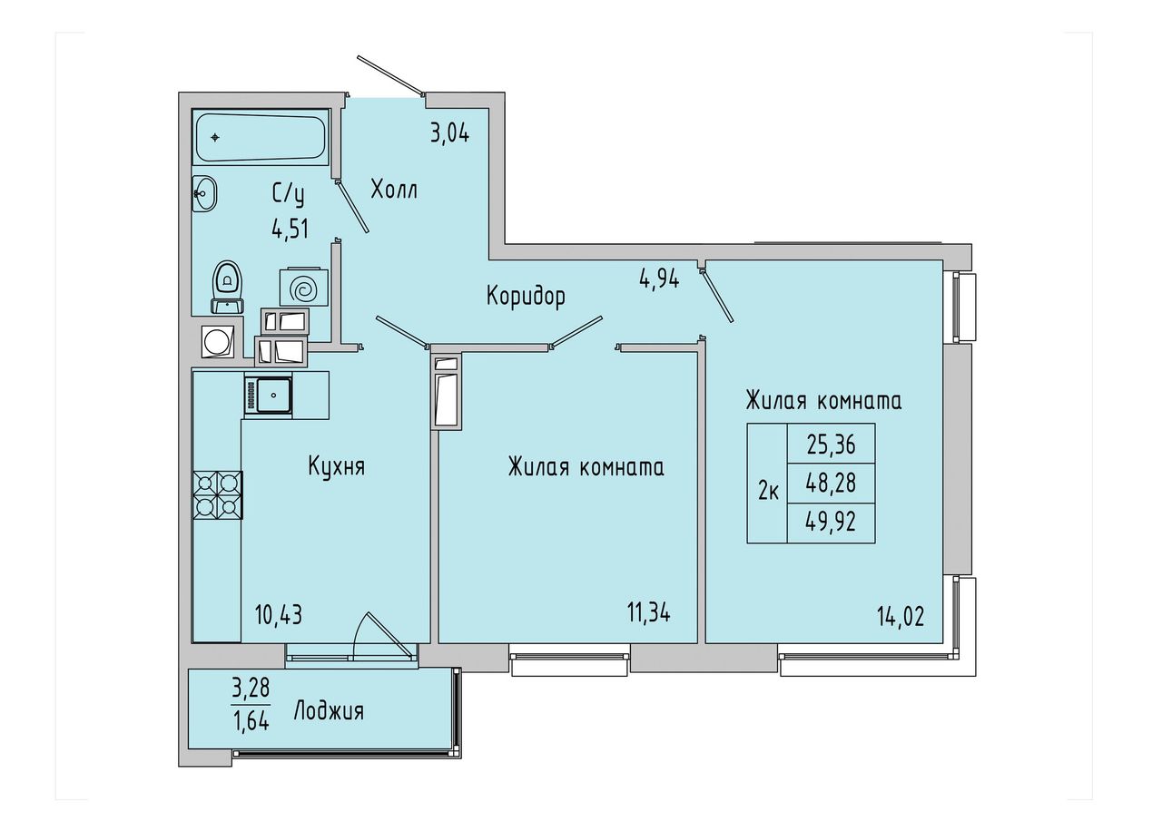 Общая площадь49,92 м²