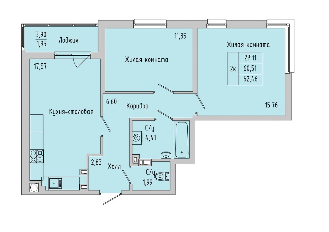 Общая площадь62,46 м²