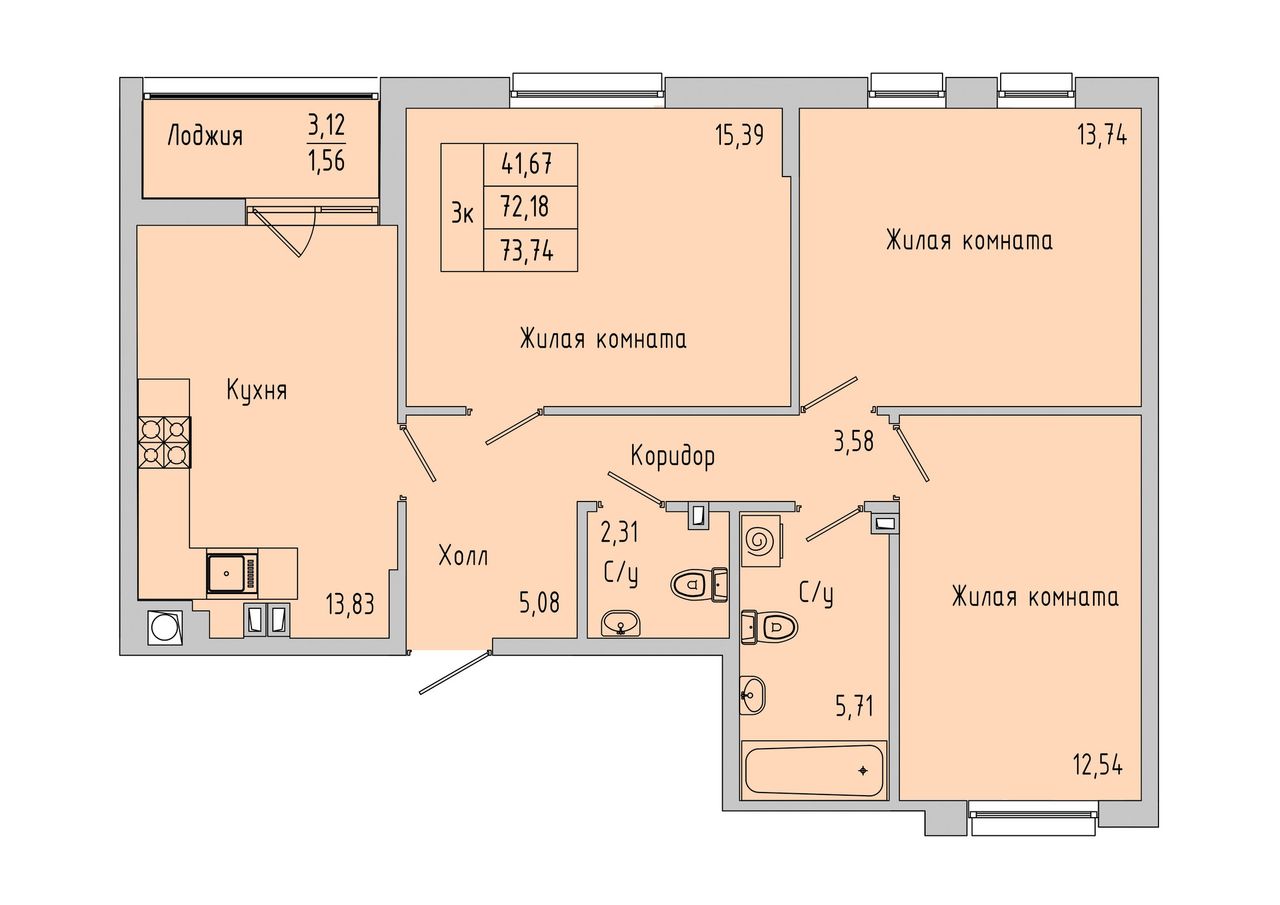 Общая площадь73,74 м²