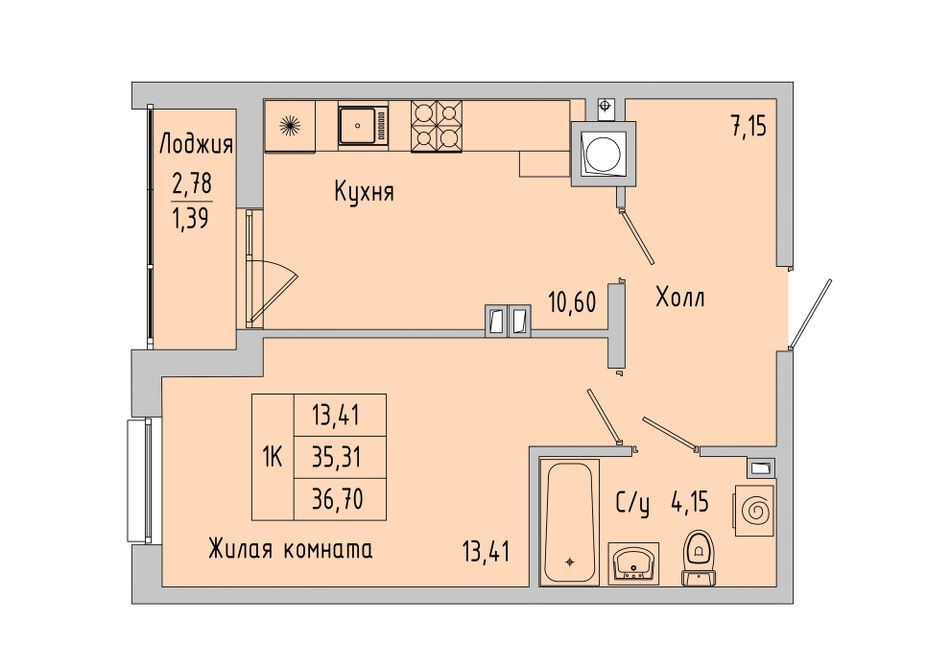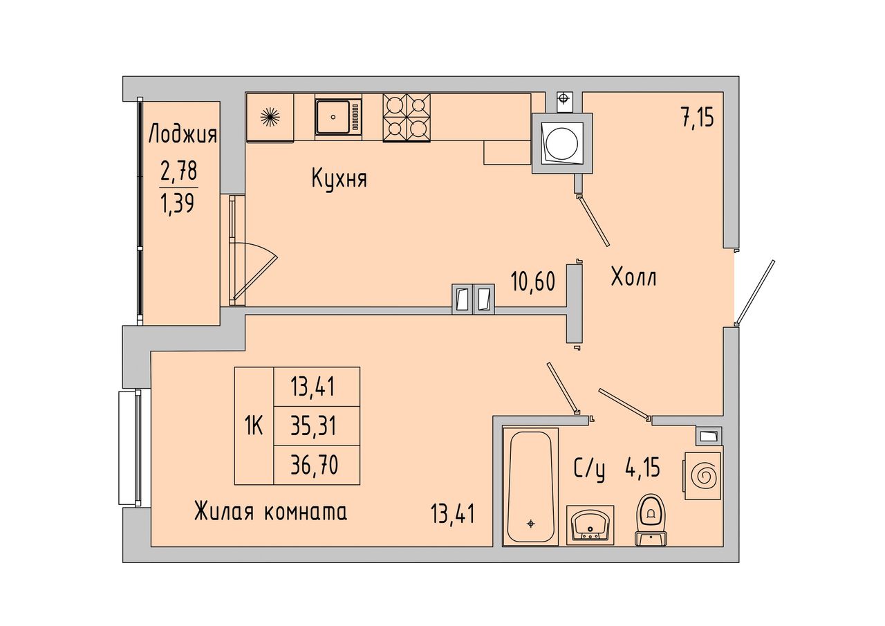 1-комнатная — 36,7 м² 1/10 эт. в Пальмира 2.0