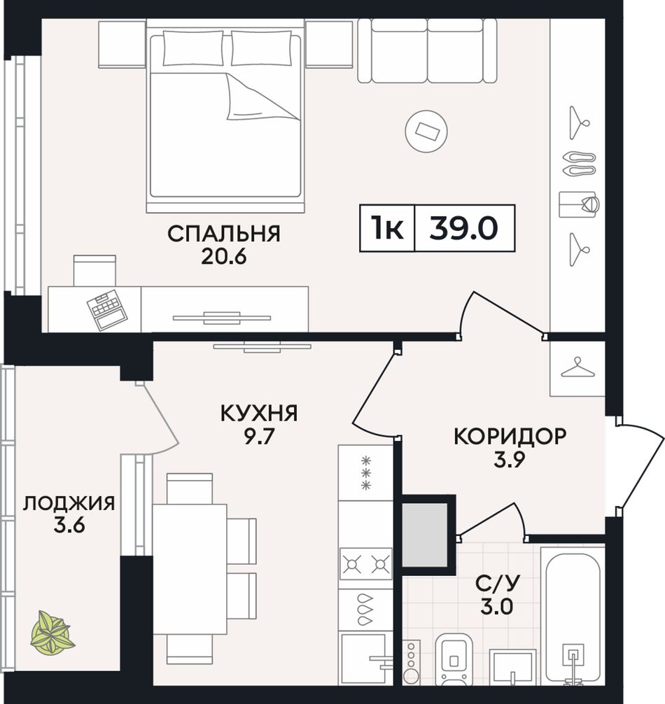 Жилая площадь20,6 м²