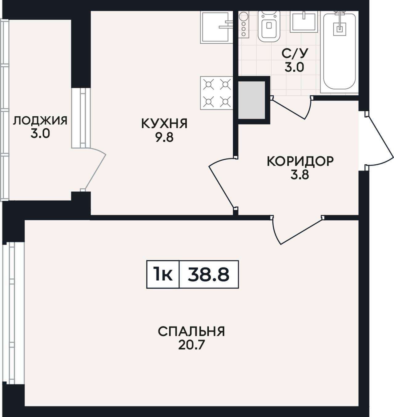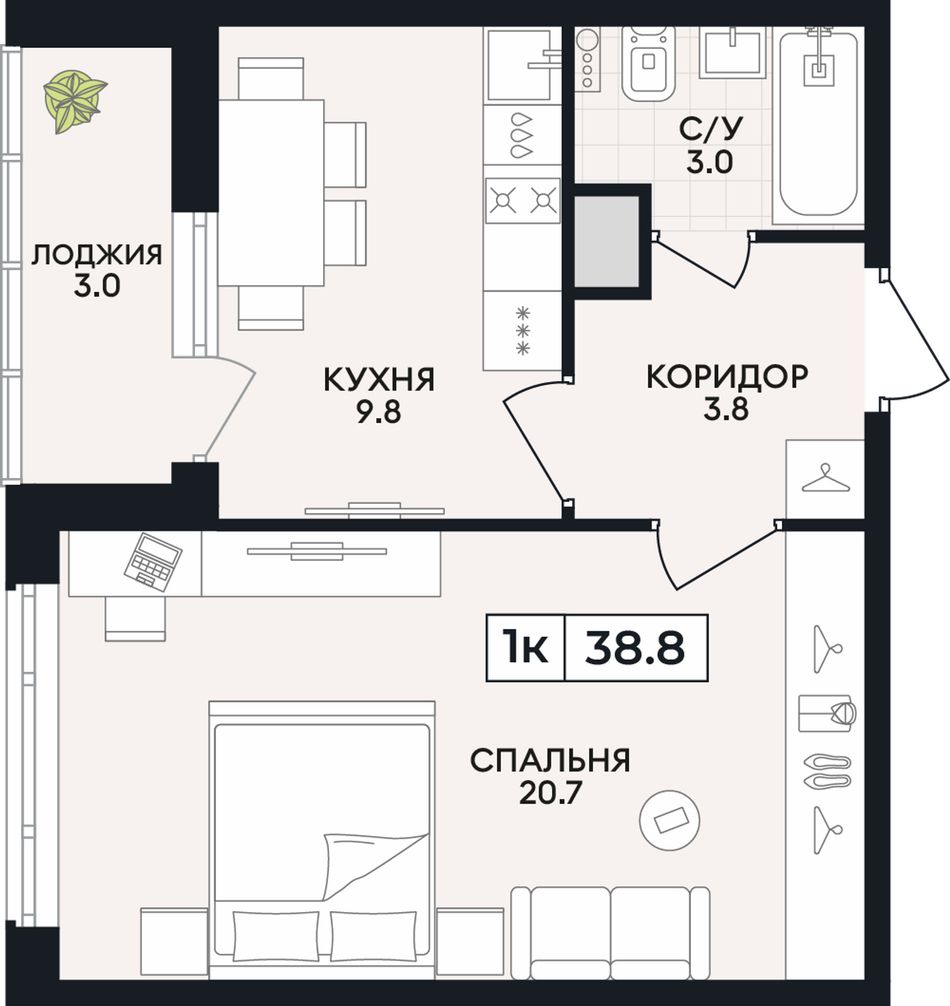 Общая площадь38,8 м²