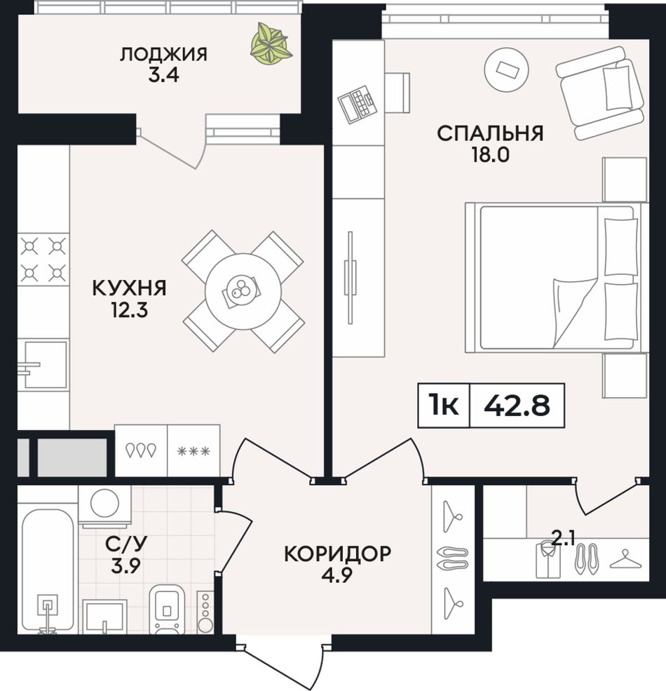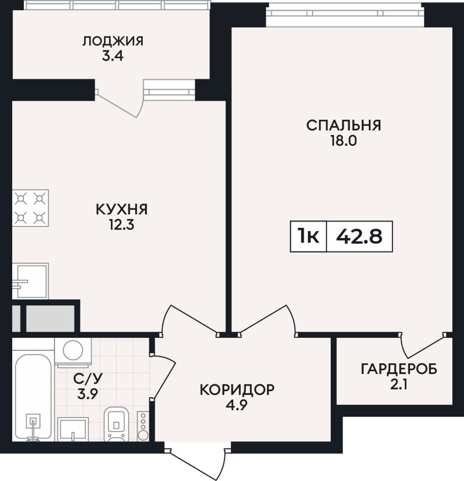 Общая площадь42,8 м²