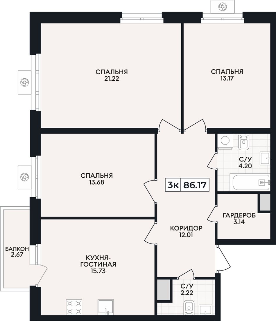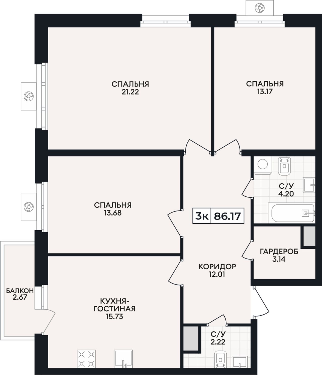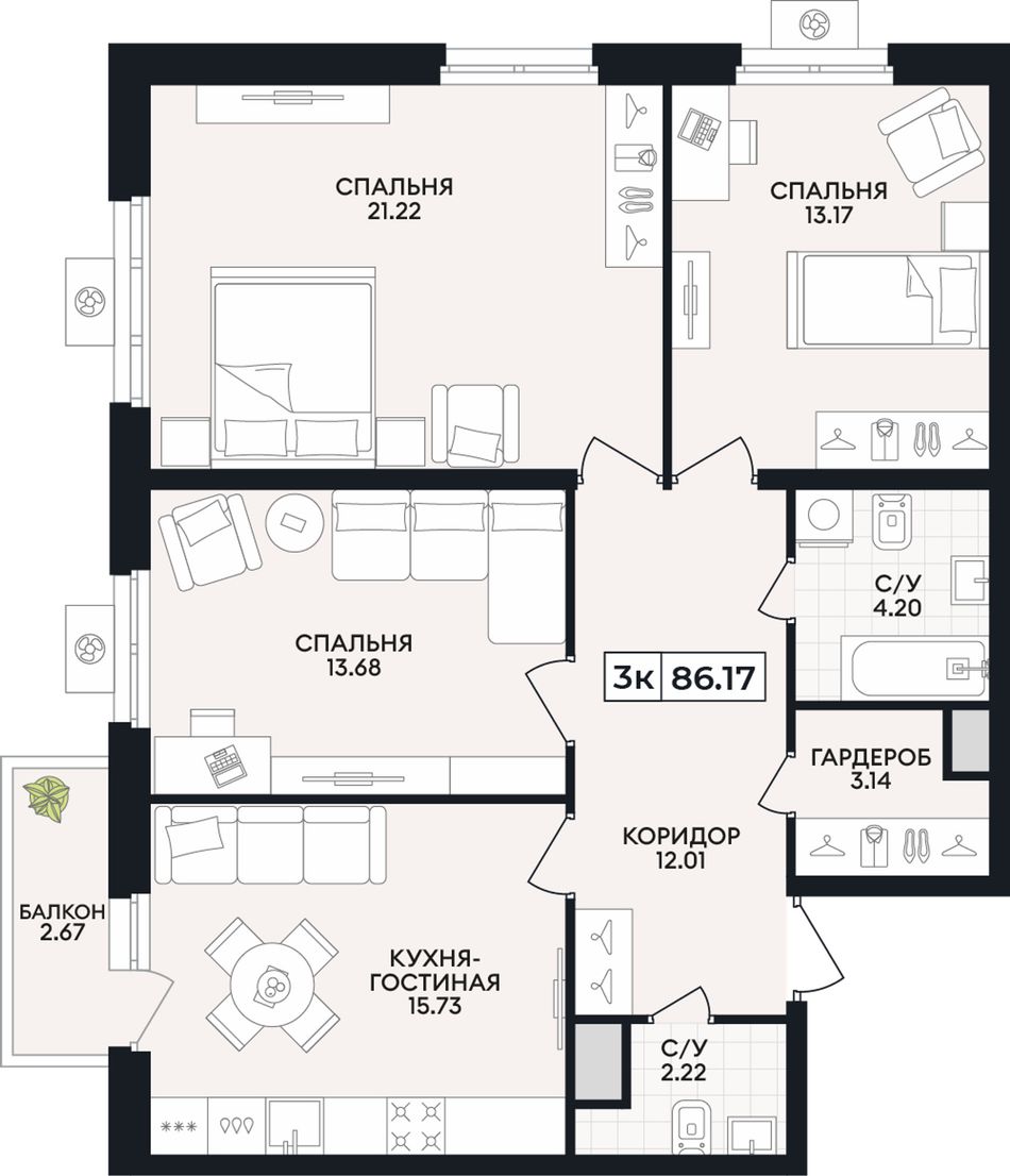 Общая площадь86,17 м²