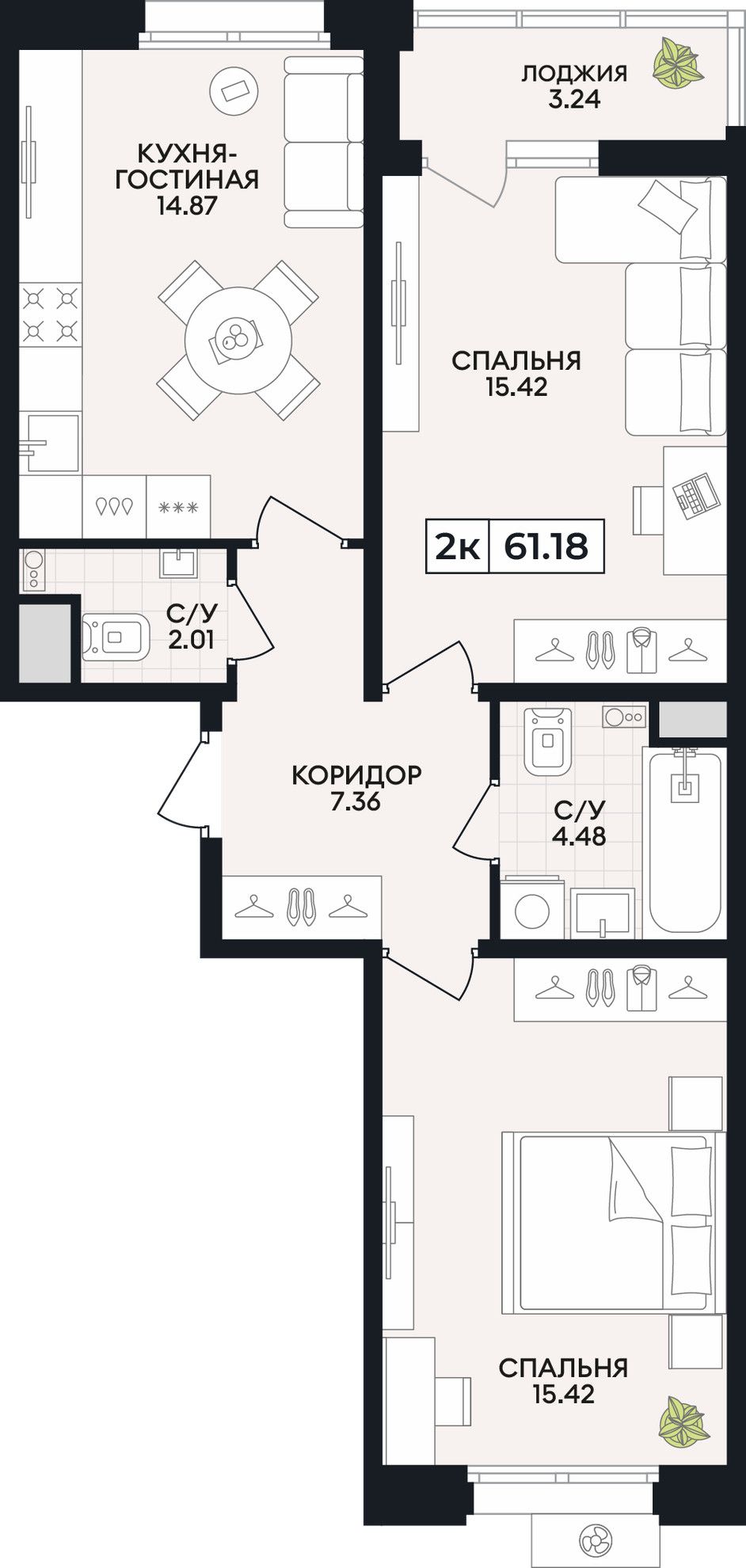 Общая площадь61,18 м²