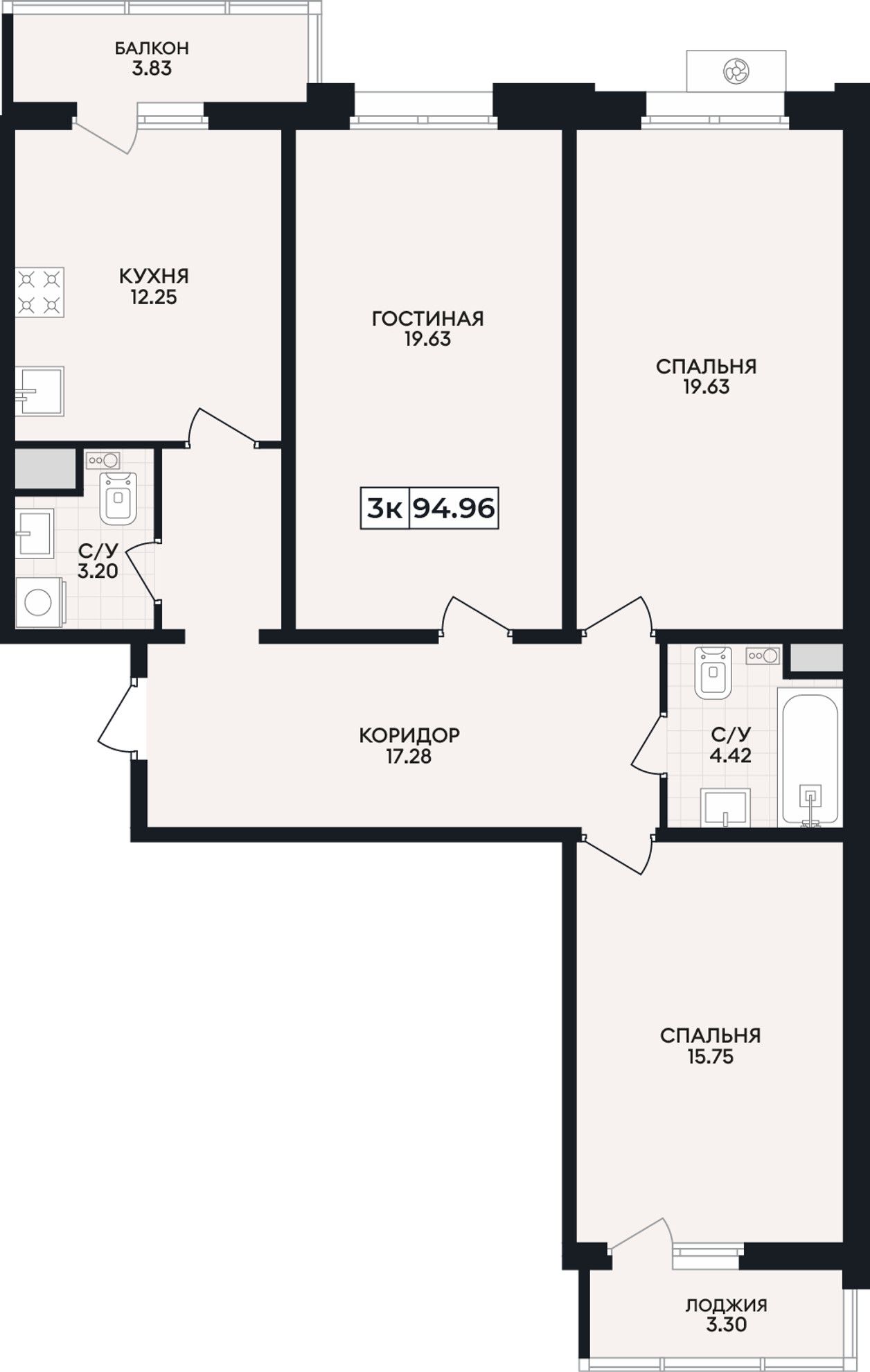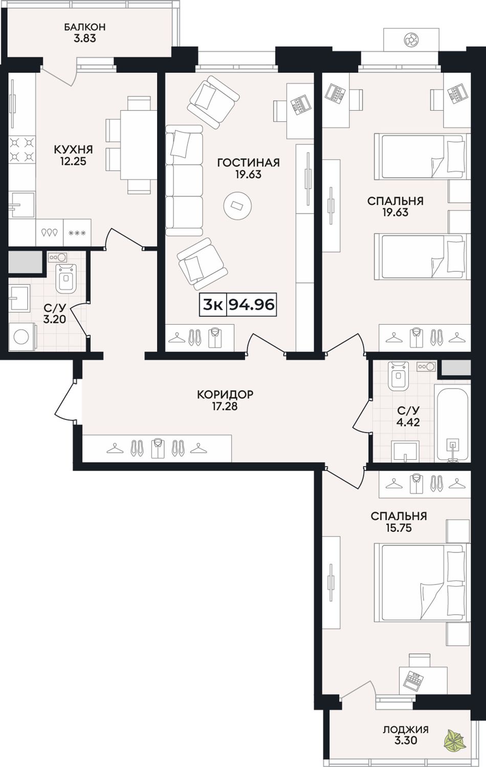 3-комнатная — 94,96 м² 5/8 эт. в Нахимов