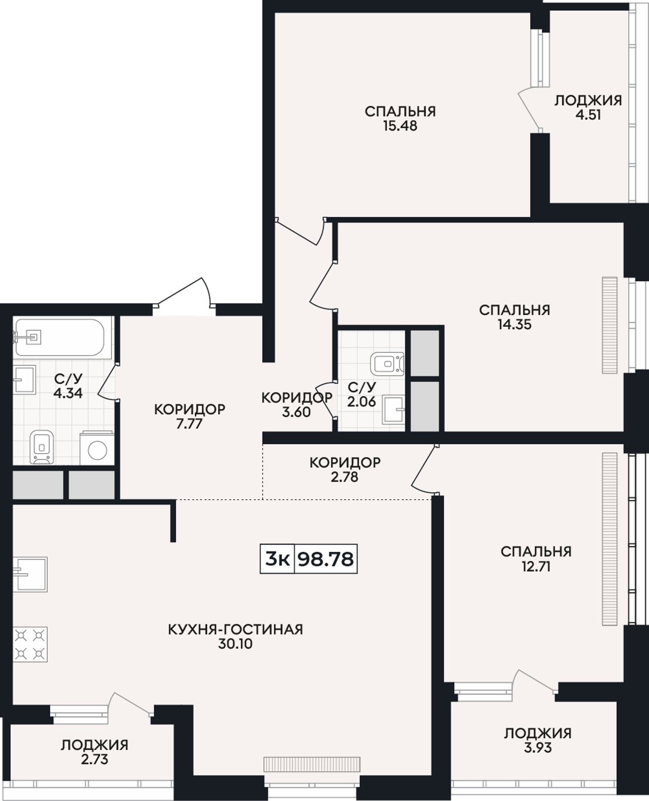 Общая площадь98,78 м²