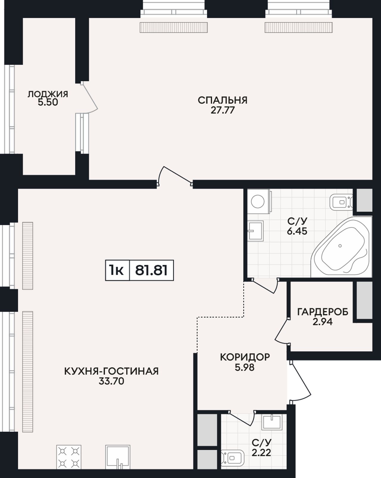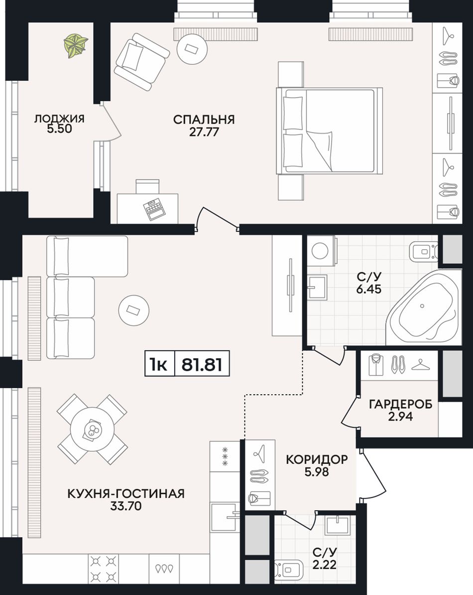 1-комнатная — 81,81 м² 15/15 эт. в Кипарис