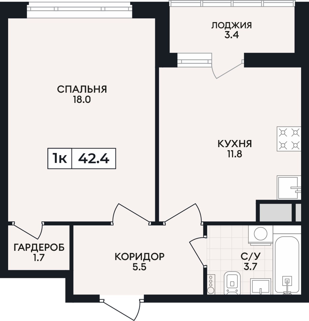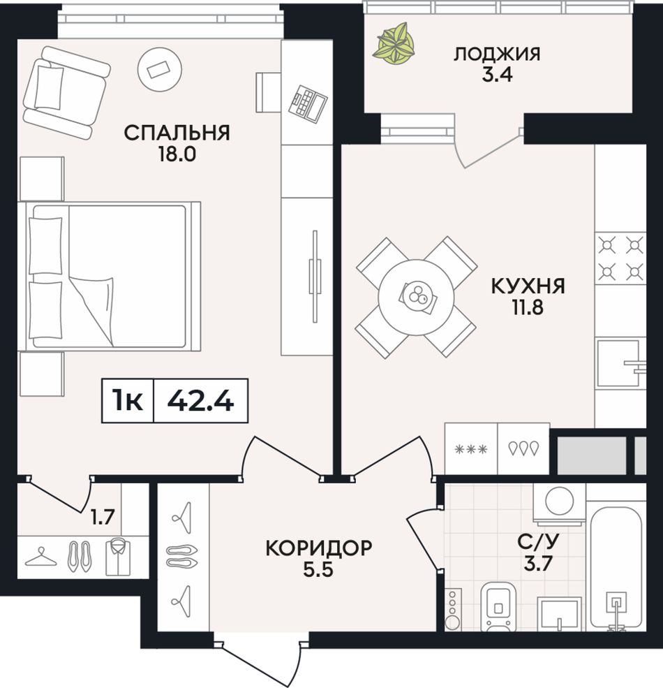 Общая площадь42,4 м²