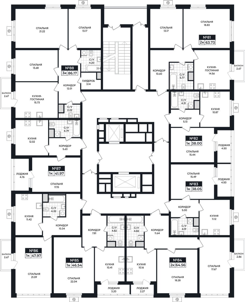 2-комнатная — 63,73 м² 13/15 эт. в Кипарис