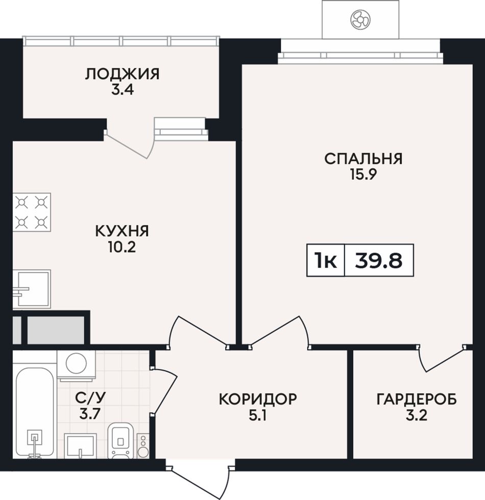 Общая площадь39,8 м²