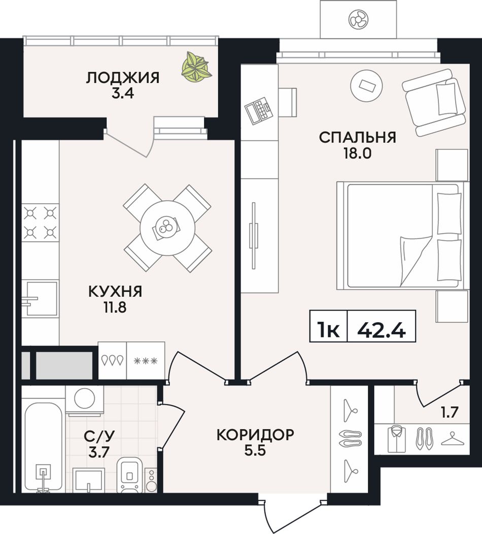 Общая площадь42,4 м²