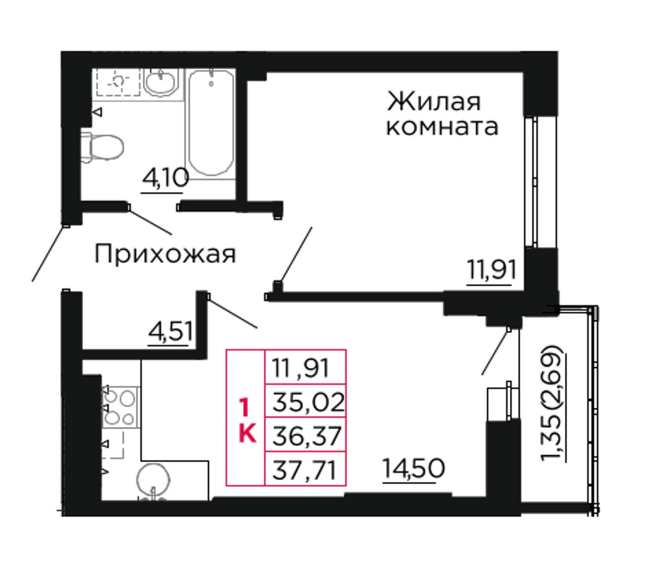 Общая площадь36,8 м²