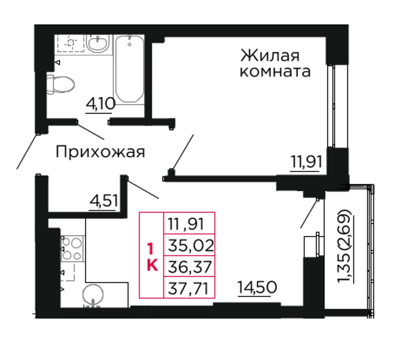 Общая площадь36,9 м²