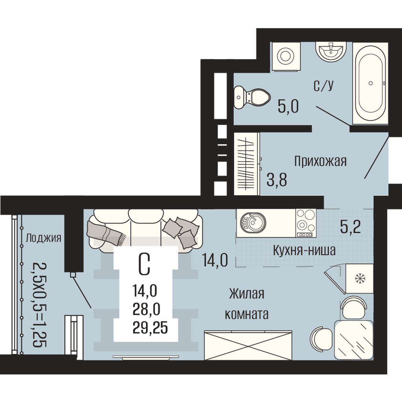 Студия — 29,25 м² 9/12 эт. в Половецкий