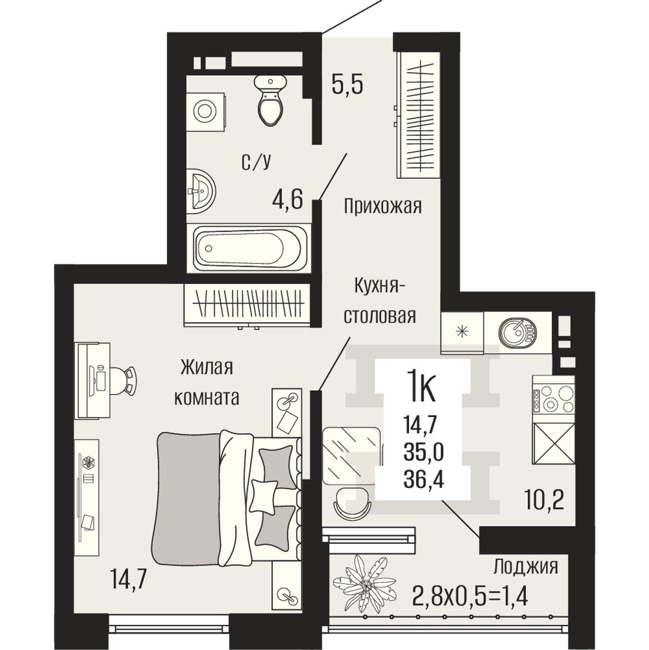 Общая площадь36,4 м²
