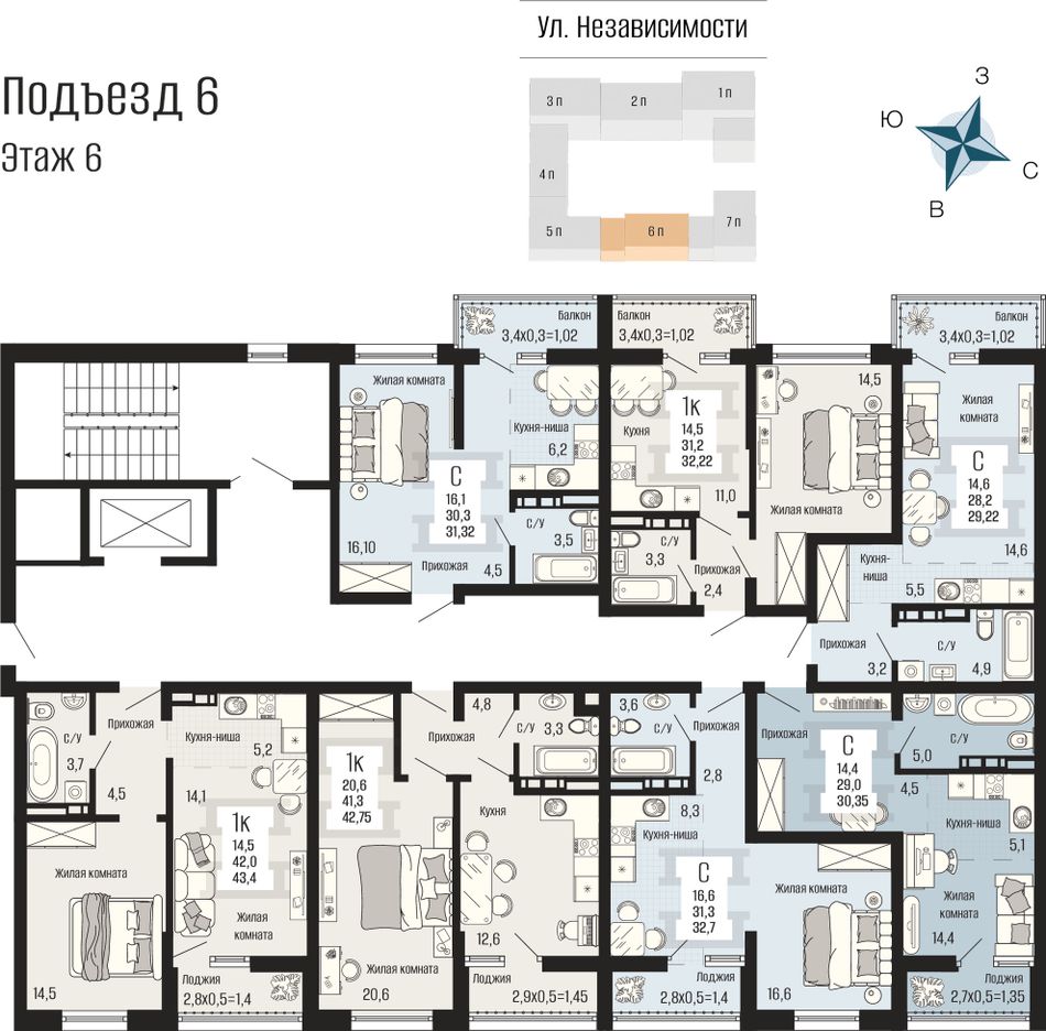 • Просторные планировки с панорамным остеклением. От студий до трехкомнатных квартир. Светлые и функциональные решения.
