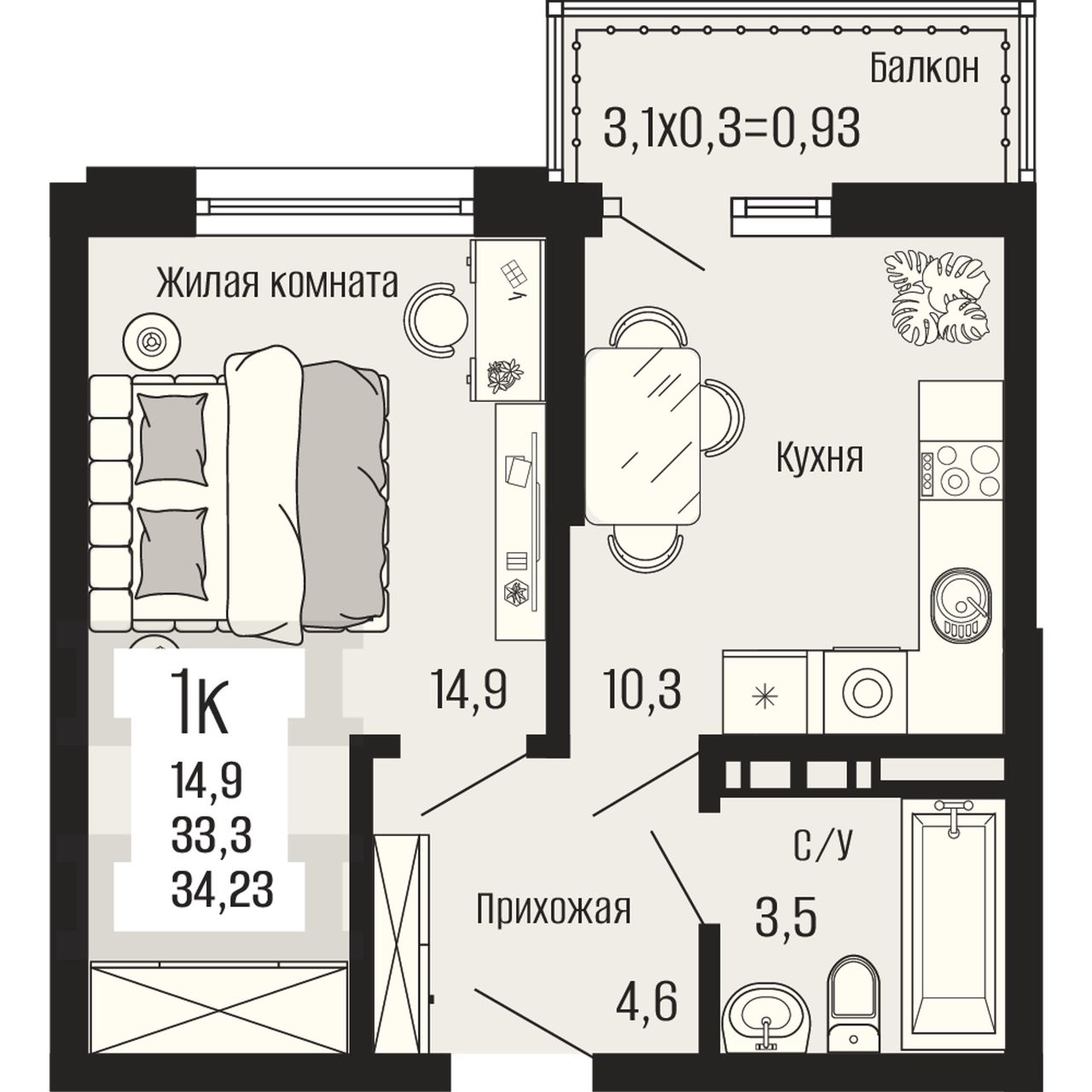Общая площадь34,23 м²