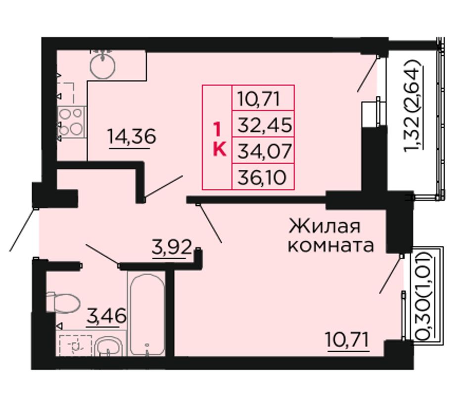 Общая площадь34,4 м²
