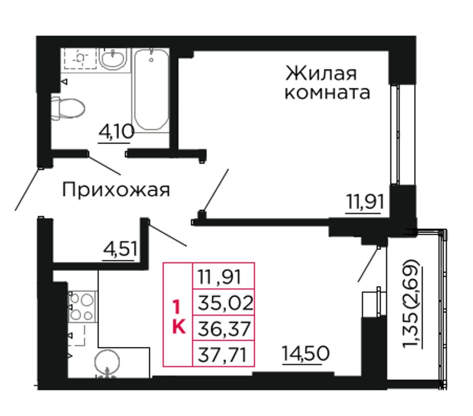 Общая площадь36,8 м²
