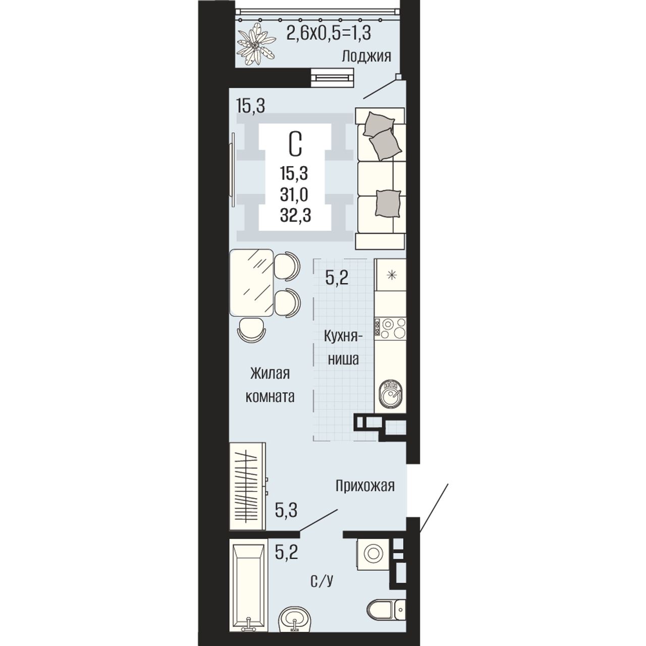 Общая площадь32,3 м²