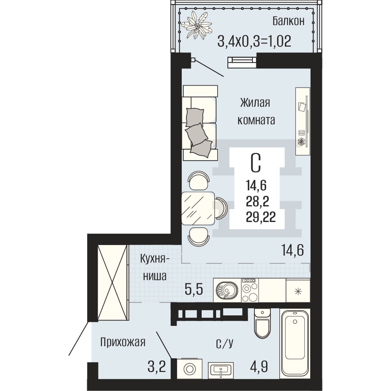Студия — 29,22 м² 6/12 эт. в Половецкий