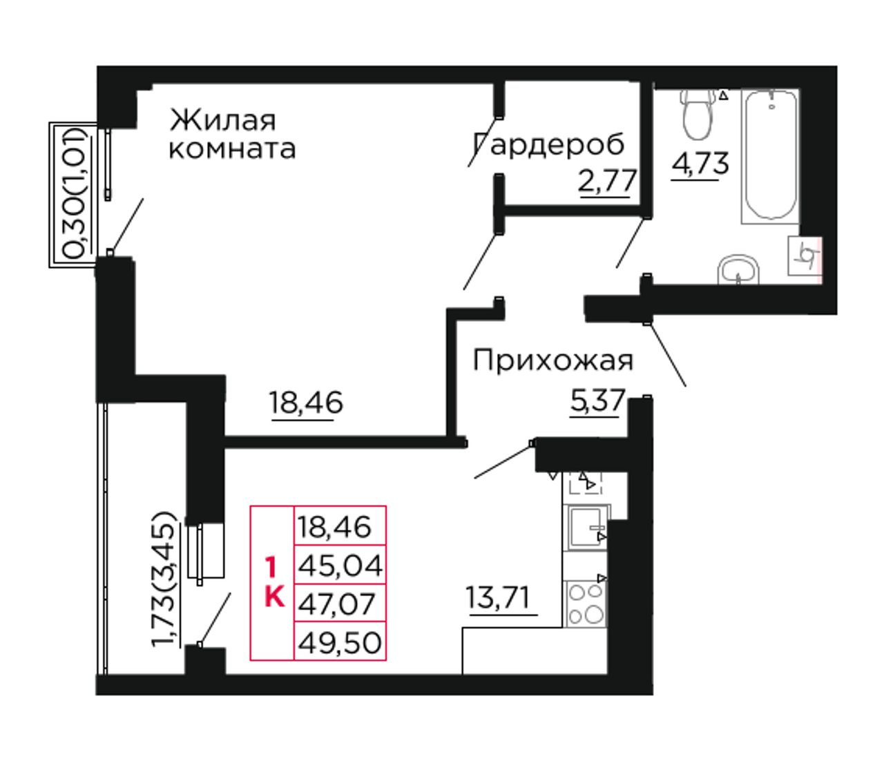Общая площадь47,5 м²