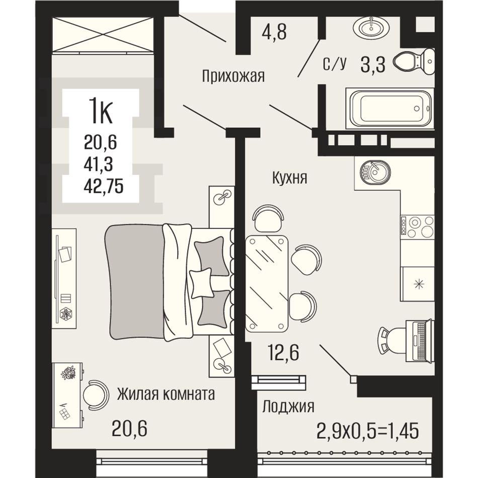 Общая площадь42,75 м²