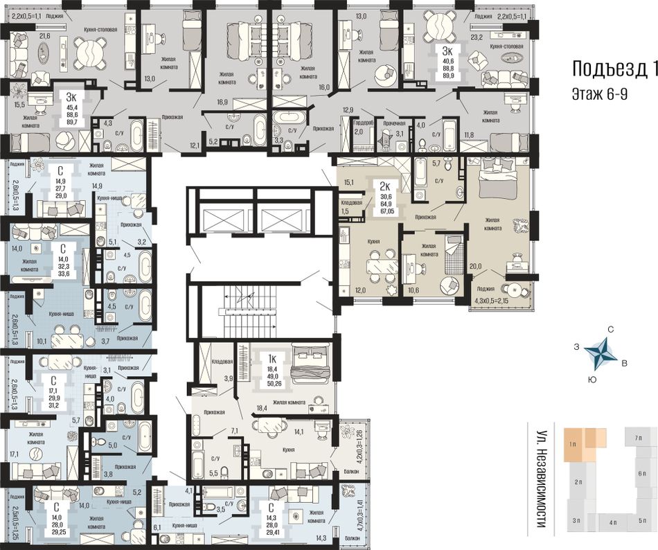 • Просторные планировки с панорамным остеклением. От студий до трехкомнатных квартир. Светлые и функциональные решения.