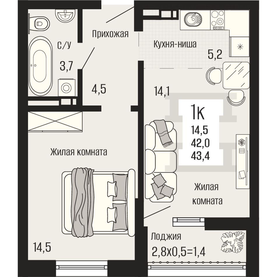 Общая площадь43,4 м²